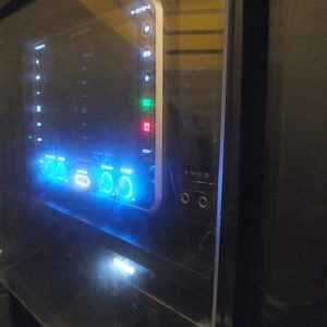 取り外したフロントパネルをスタンドに立てて使用しているのです。